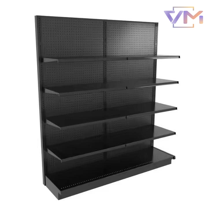 Kệ Trưng Bày Gondola Đơn Mặt Pegboard Màu Đen – Hạng Nặng, Dùng Cho Siêu Thị & Cửa Hàng – Sản Xuất Từ Kim Loại Cao Cấp